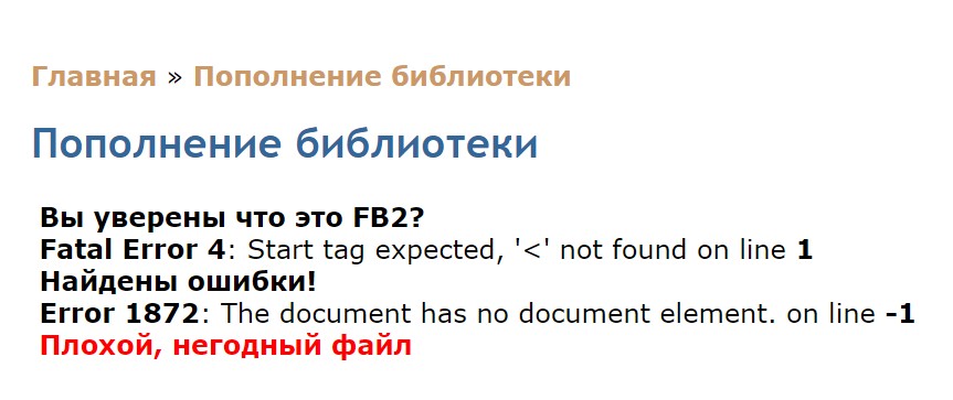 Спрашивает: "Вы уверены, что это FB2?" Нет, я уверена, что это валидный EPUB! Их уже под три сотни у меня на диске. Как заливать?